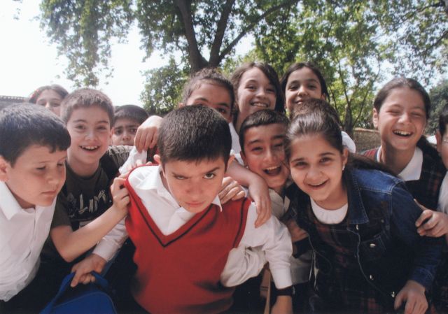 画像:イスタンブールにあるトプカプ宮殿でカメラを小学生に向けたら。笑