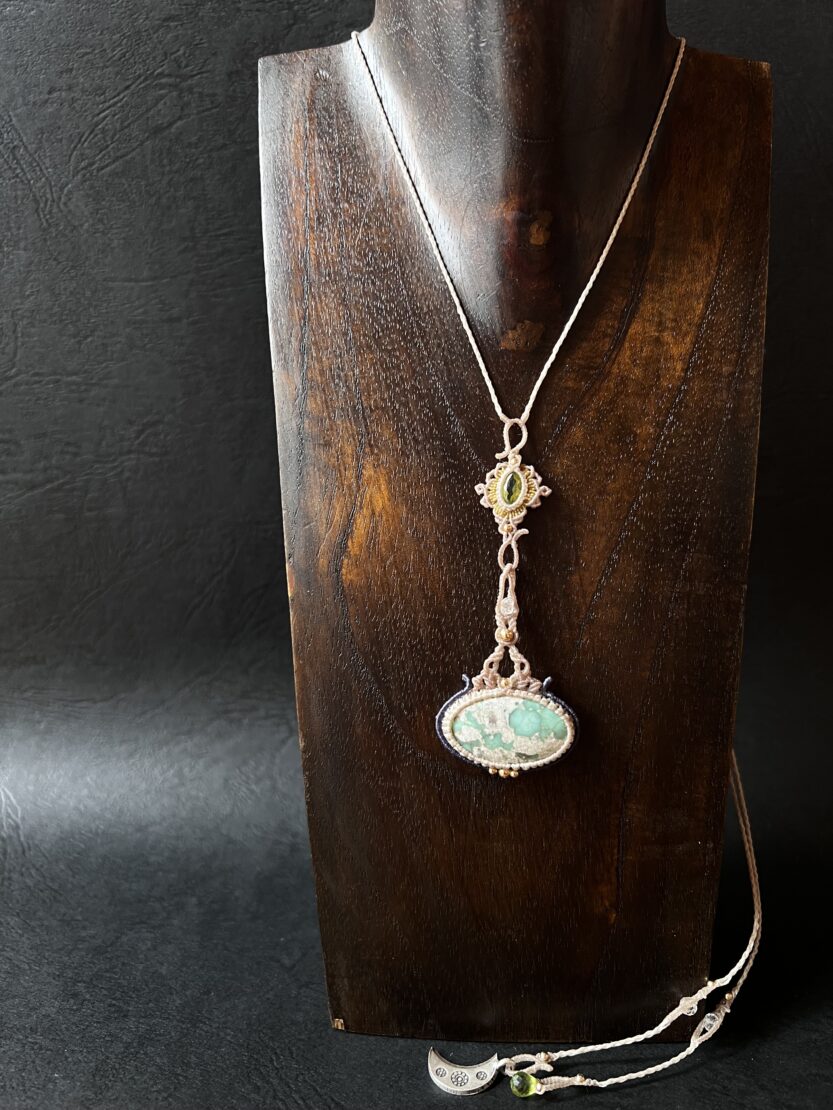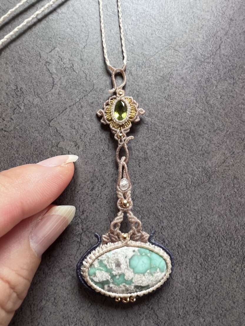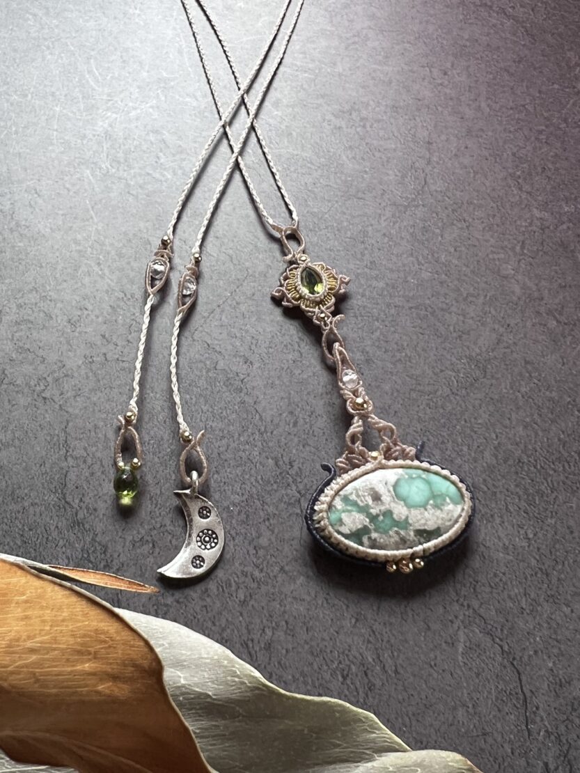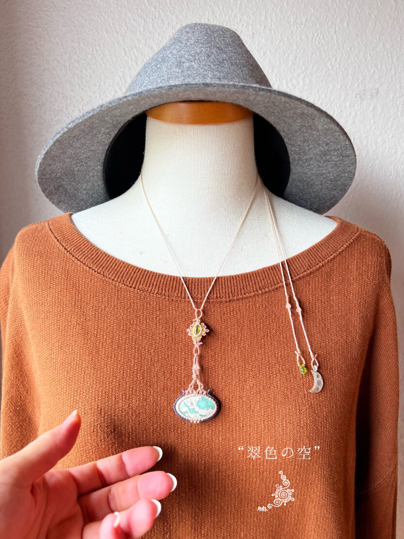 ▼次にご紹介するのは、新緑の頃を想わせるような爽やかでいて樹々を感じる首飾りを。