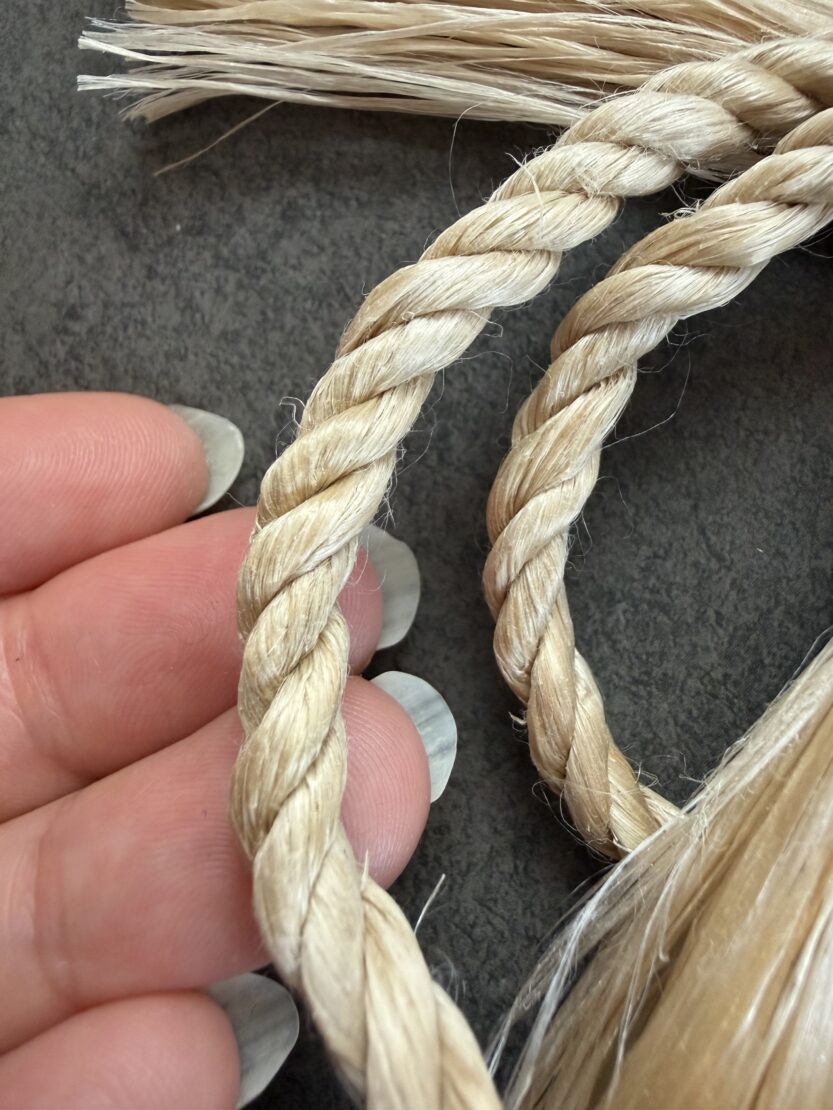野州麻の精麻を丁寧にひとつひとつ手で綯い仕上げました。
