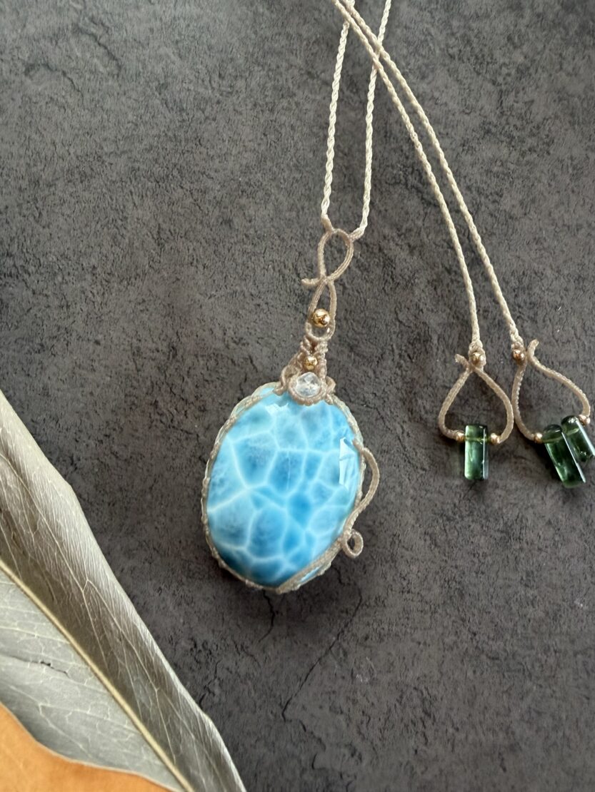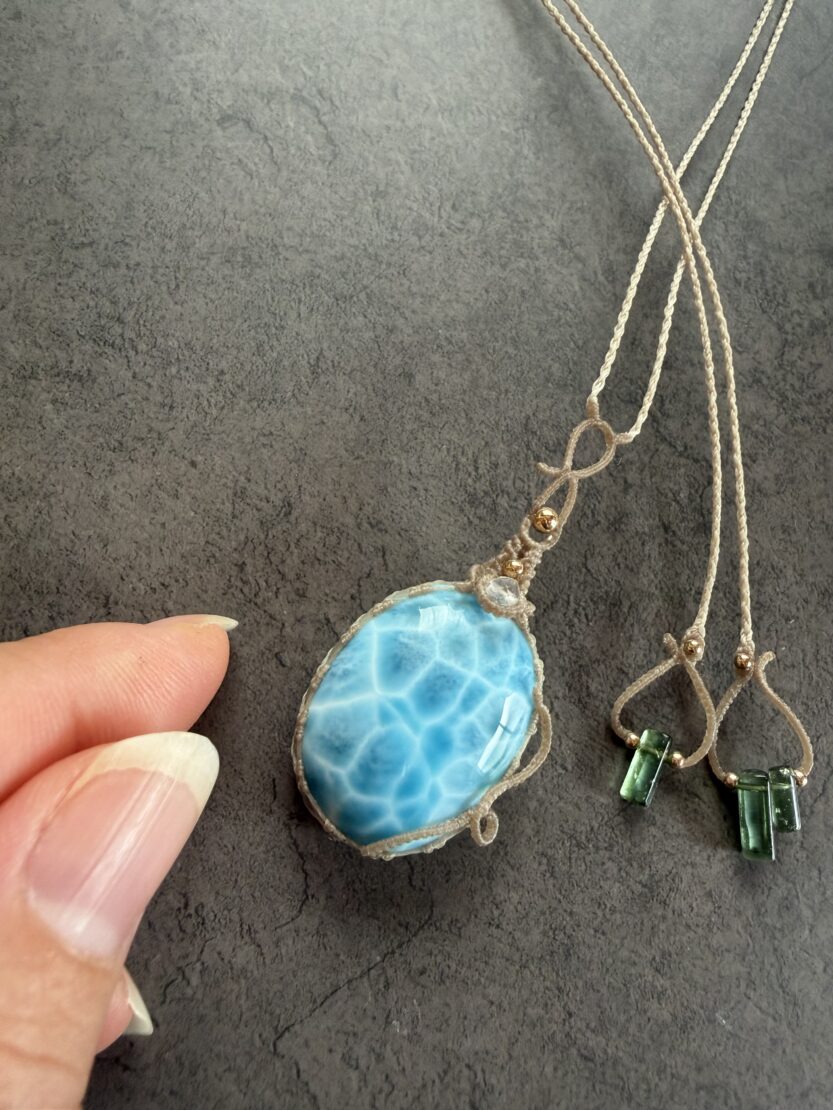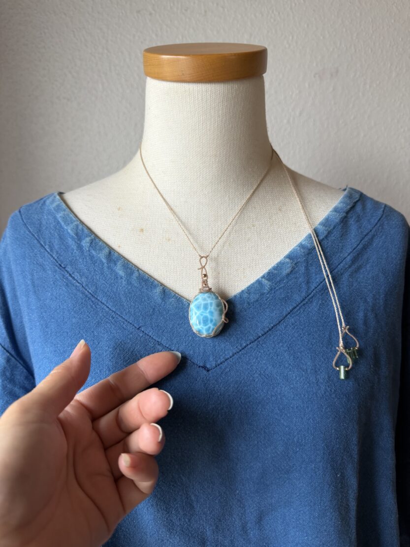 ▼次は、月麻では今まで用いてきたラリマーの中でも群を抜いてとびっきりのクォリティーを誇る“超美”ラリマーの首飾りのお目見えです。