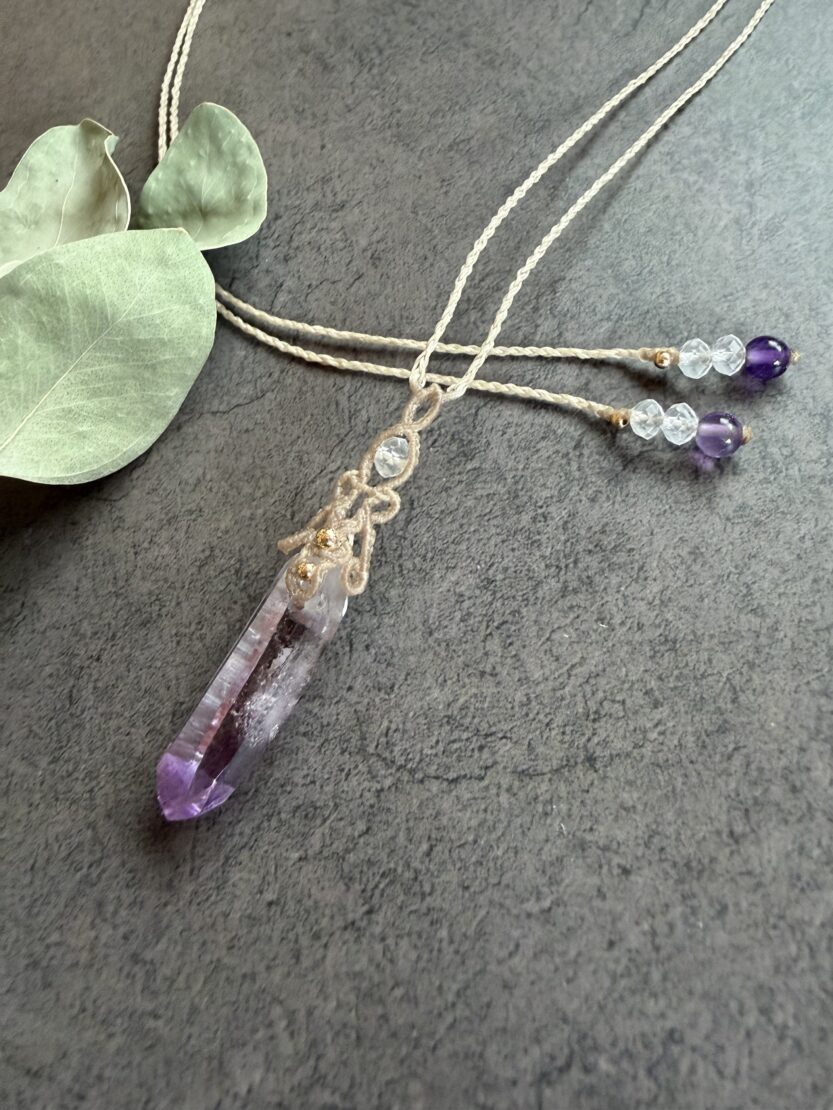 小さくとも本格的な輝きを宿したオパールや、世界で一番美しいと称されるアメシストなどを丁寧に結び上げました。