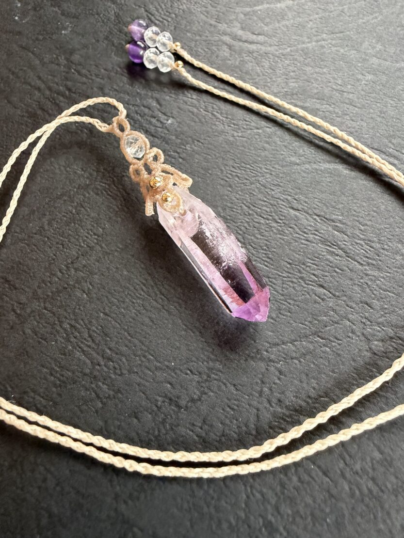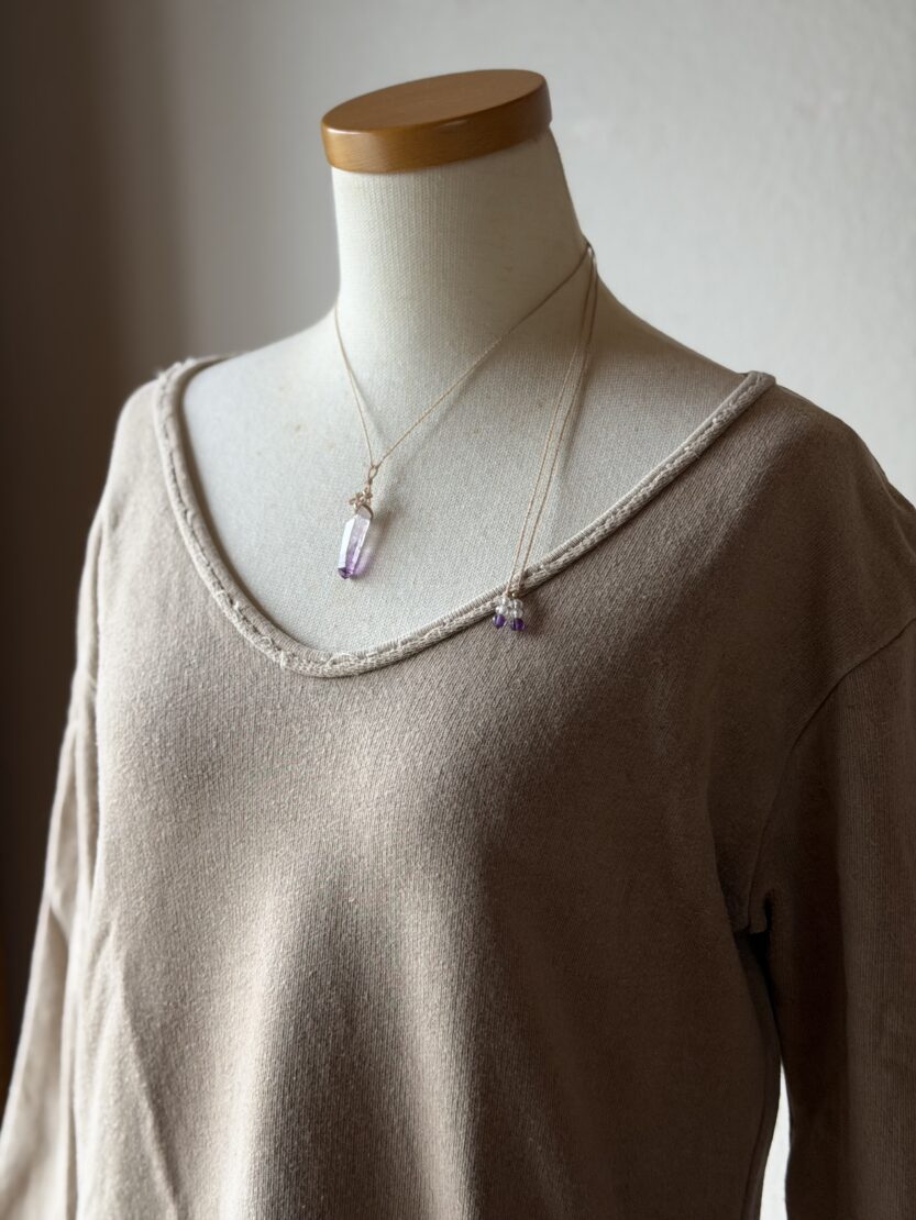 ▼次は「世界で一番美しいアメシスト」と称される天然石で結んだ首飾りのご紹介です。