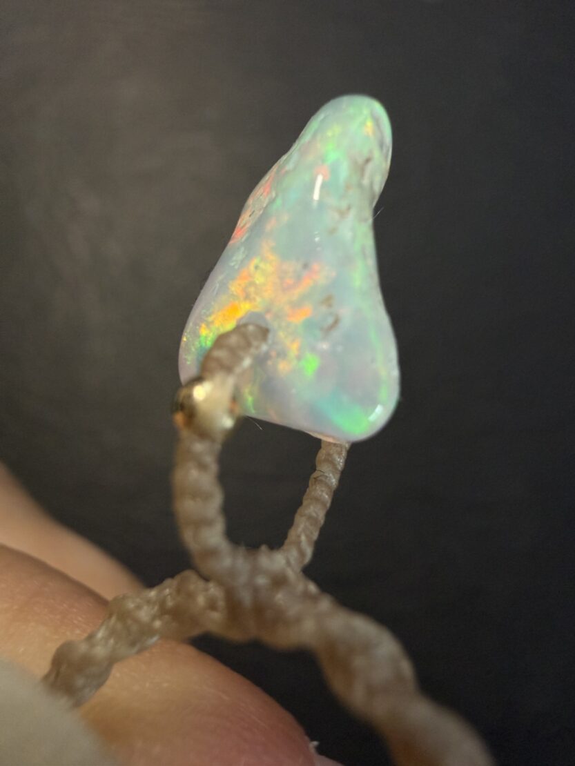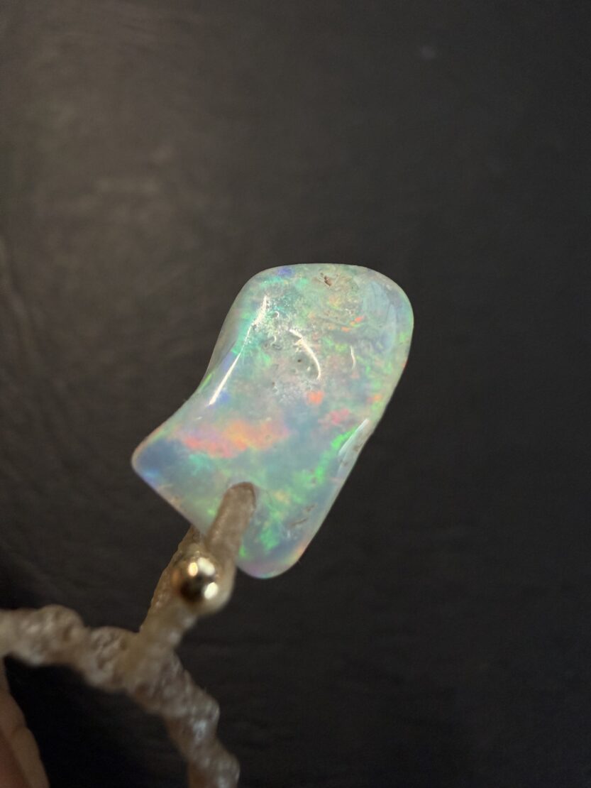 オパールの所々に小さく母岩の跡がありますが、この煌めきをもってすれば気にならないほどの小ささです。