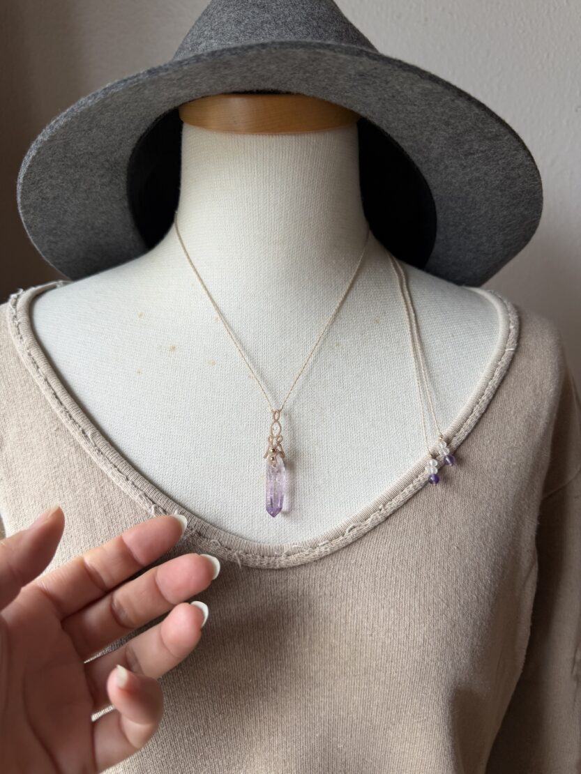 こちらのアメシストは少し薄めのパープルで非常に上品です。