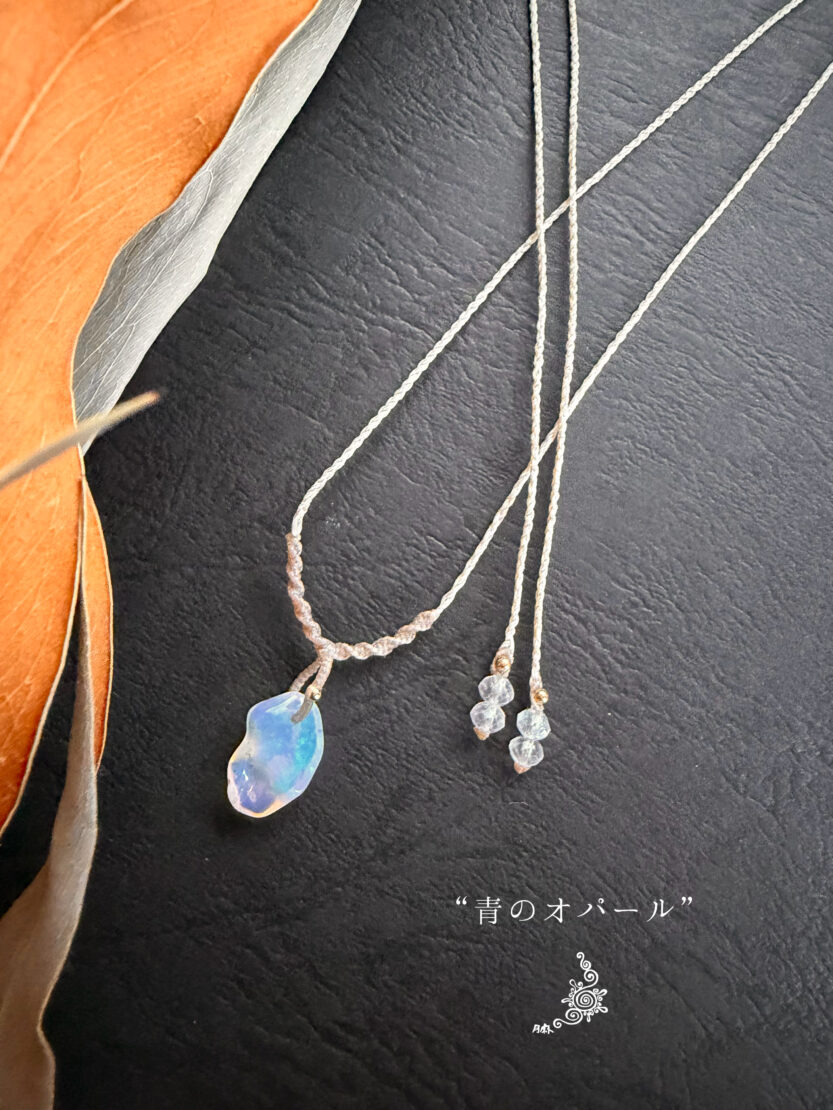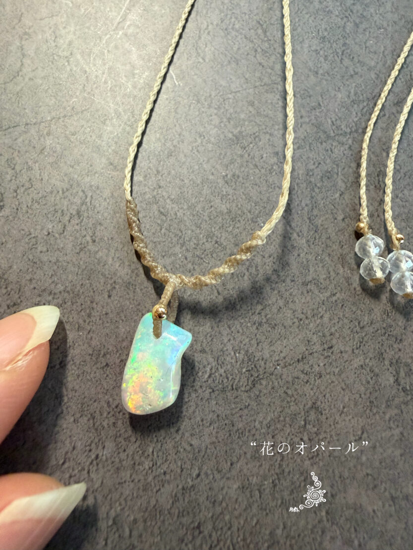 既出のオパールの首飾りとは異なるシンプルデザインで結び上げました。