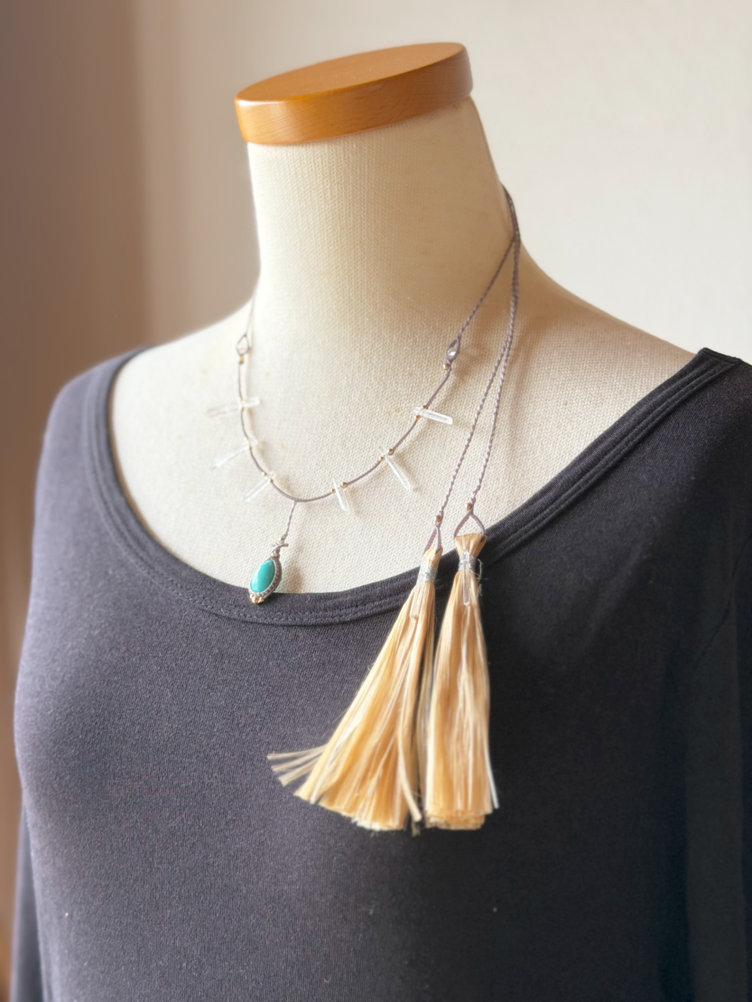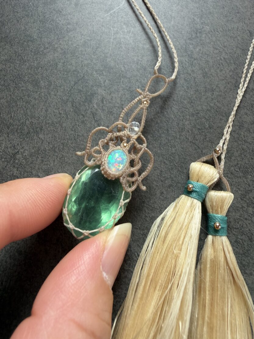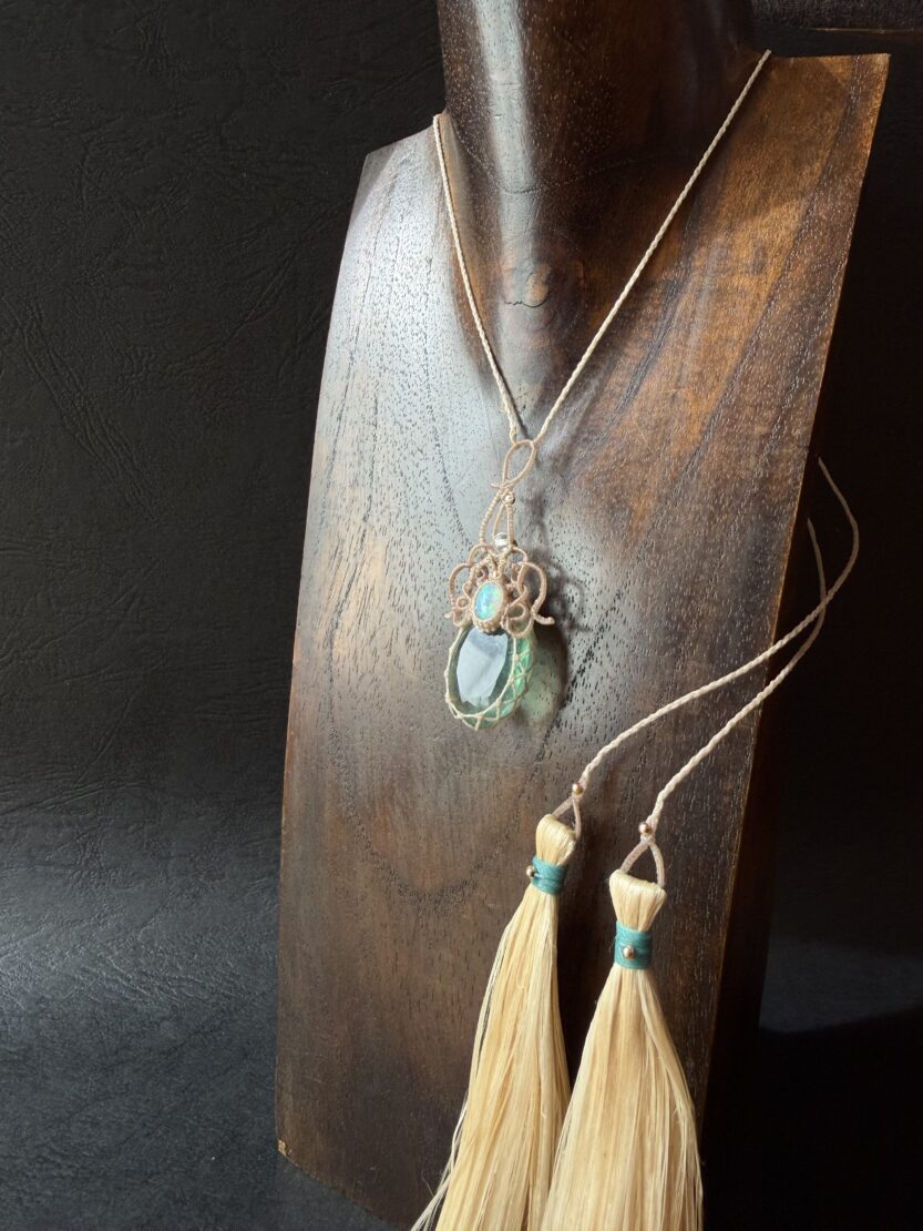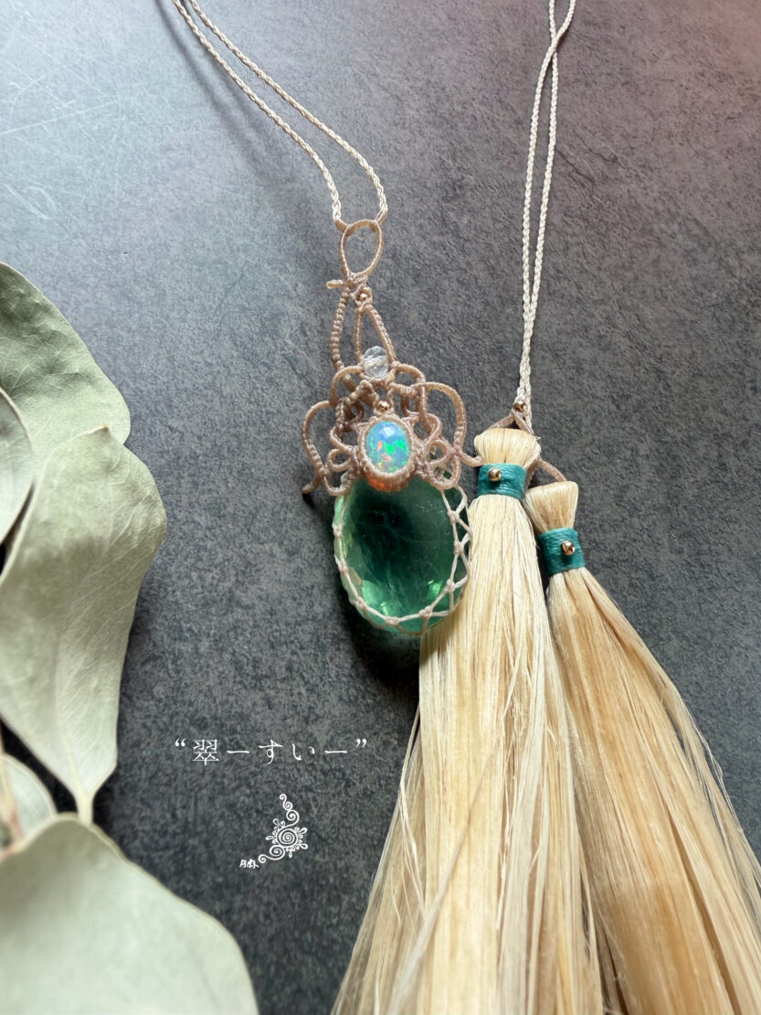 背守りには、野州麻・精麻のタッセルとマダガスカル産水晶を添えて。
