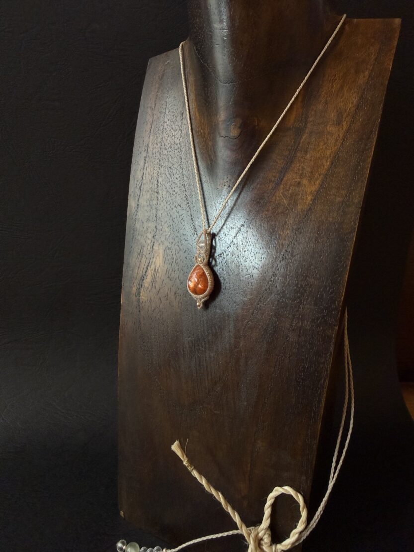 キラキラのサンストーンを至極シンプルな首飾りに仕立てました。